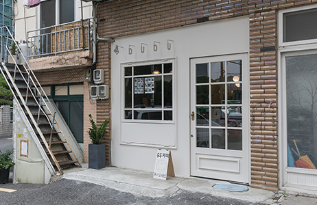 “처음에는 떡케이크 공방을 열려고 했습니다. 오며 가며 들르는 분들보다는 알고 찾아오시는 분들이 많을 테니, 골목 안쪽에 있어도 괜찮을 거라 생각했어요. 대신, 교통 편의성을 생각해서 지하철역이 가까운 위치를 골랐습니다. 그런데 막상 자리를 잡고 보니 유동 인구가 제법 되는 편이라 카페를 함께해도 좋겠다 싶어 공사 직전에 카페로 결정했죠.” (전창엽)