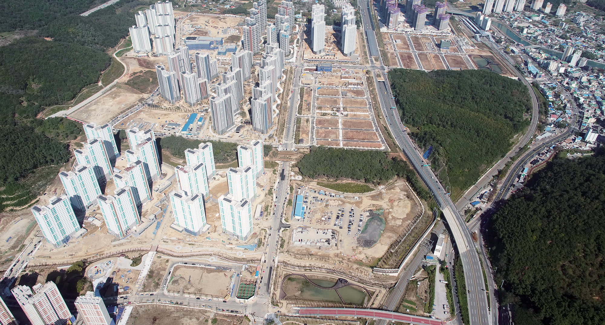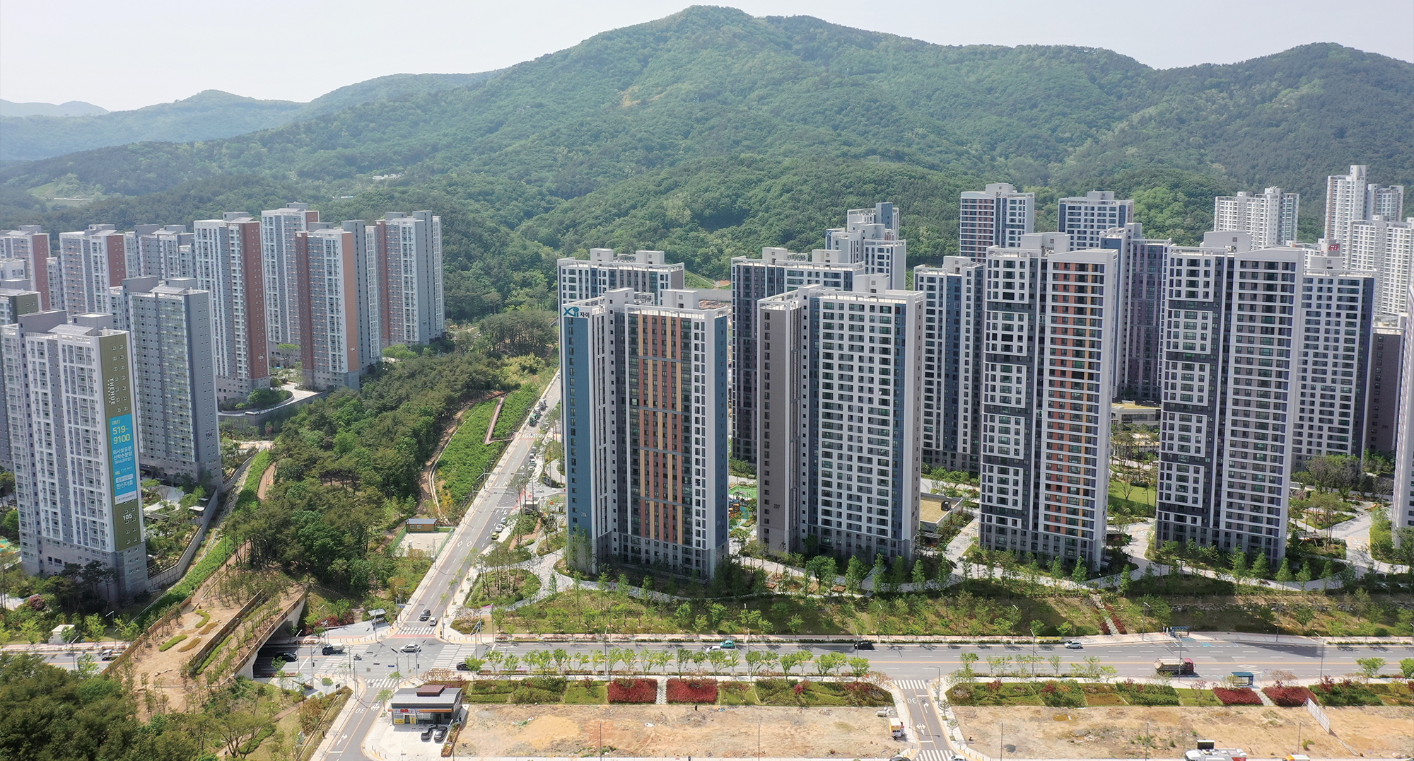 뒤는 일광산이고 앞은 일광해수욕장인 배산임수 지형이라 굉장히 살기 좋은 곳이지요. 거기에 일광신도시는 주민 편의와 안전을 위한 기반시설이 굉장히 풍부합니다. 주거용지는 48.4% 밖에 되지 않아요. 도로 17%, 학교 5%, 공원·녹지 21%, 근린공원 5개소, 보행자 전용 녹지 축이 1.4km에 달할 정도지요. 무엇보다 일광의 아름다운 자연을 그대로 살리며 도시를 계획한 점이 가장 두드러집니다. 녹지를 기준으로 축을 만들어 숲 훼손을 최소화하고, 보호펜스를 설치해 야생동물들이 놀라지 않도록 배려했습니다. 기존 시가지와 연결되는 교리진입도로 건설도 인근 지역 주민들과 협의를 통해 시공방식을 변경해 상부를 공원화하고, 빗물이 침투되는 투수블록과 친환경 나무 데크를 사용한 점도 두드러집니다. 도심 한가운데 친환경 친수공간인 저류지(2곳)도 만들었습니다. 안전에 대한 부분도 신경을 많이 썼어요. 보통 CCTV 1대가 경찰 20명의 역할을 한다고 하지요. 충분한 CCTV 설치 뿐 아니라, 학교 인근에 펜스를 설치해 아이들이 안전하게 통학할 수 있도록 관심을 기울였습니다. 이와는 별개로 지역사회 발전을 위해 공사가 기장군 전역에 CCTV 100대(10억원 상당)를 설치하기도 했습니다.