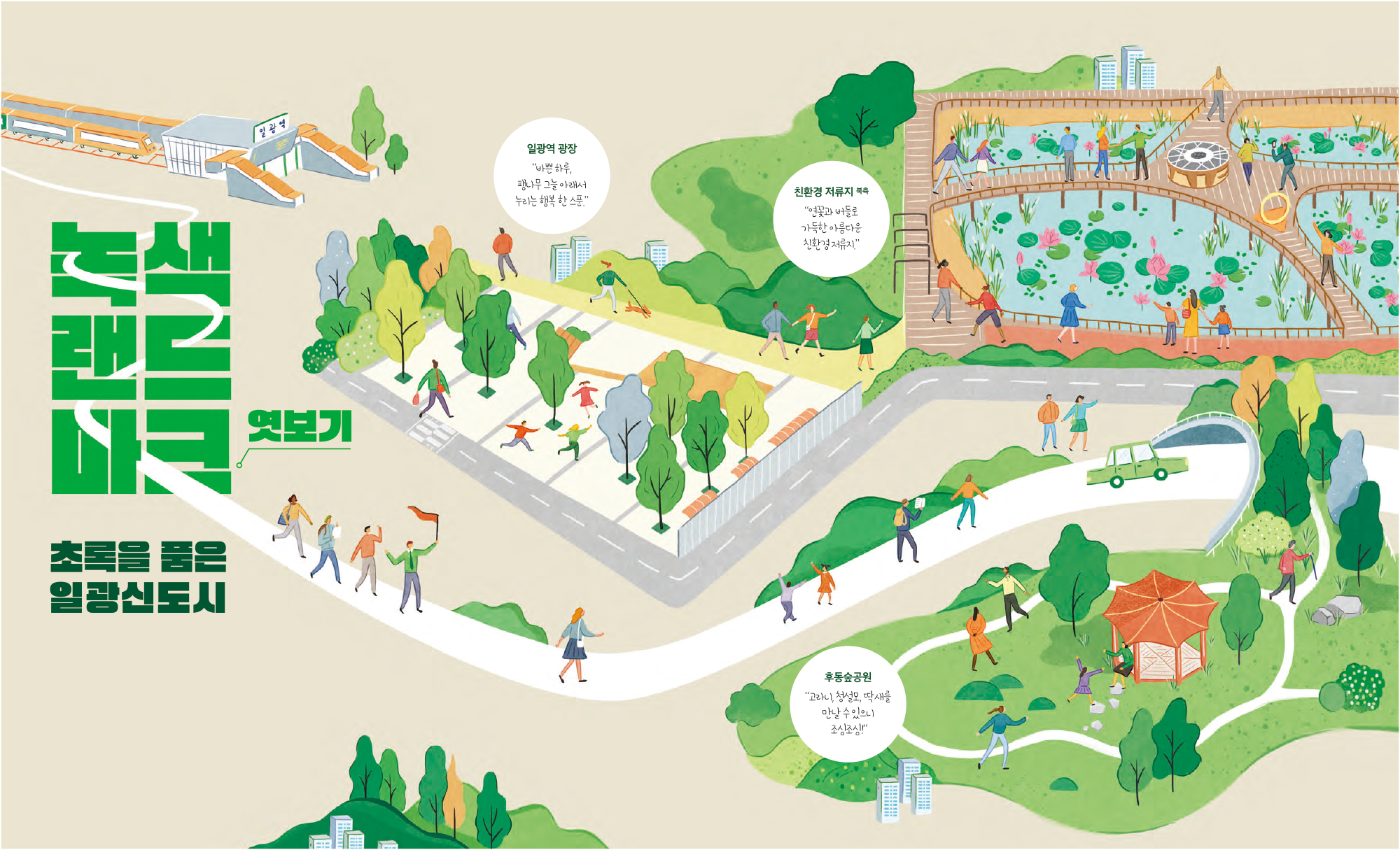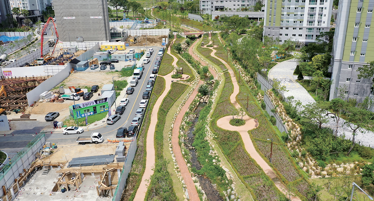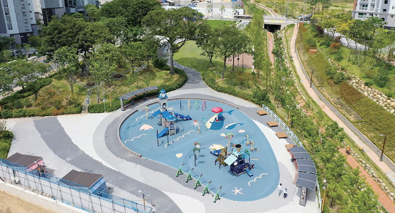 일광신도시 공원・녹지 등 조경공간을 조성하기까지 많은 노력이 있었습니다. 수목의 규격・밀도 등을 높여 주민들이 입주 초기부터 풍부한 녹음과 쾌적한 생활환경 등을 경험할 수 있도록 하고 싶었습니다. 다채롭고 특색 있는 공간도 많이 만들었습니다. 공원 콘셉트에 어울리는 해시계, 바람개비 등 시설물을 고민하고, 보행자 도로의 포장패턴 디자인 하나도 세심하게 검토하며 주민들이 다양한 경험을 할 수 있도록 노력했습니다. 공사가 끝난 뒤 현장을 보면 항상 조금씩 아쉽기도 하지만, 우리공사가 설계부터 시공까지 고민하고 노력해 조성한 공간인 만큼 주민들이 불편함 없이 잘 이용하고 소중하게 가꿔가기를 바랍니다.