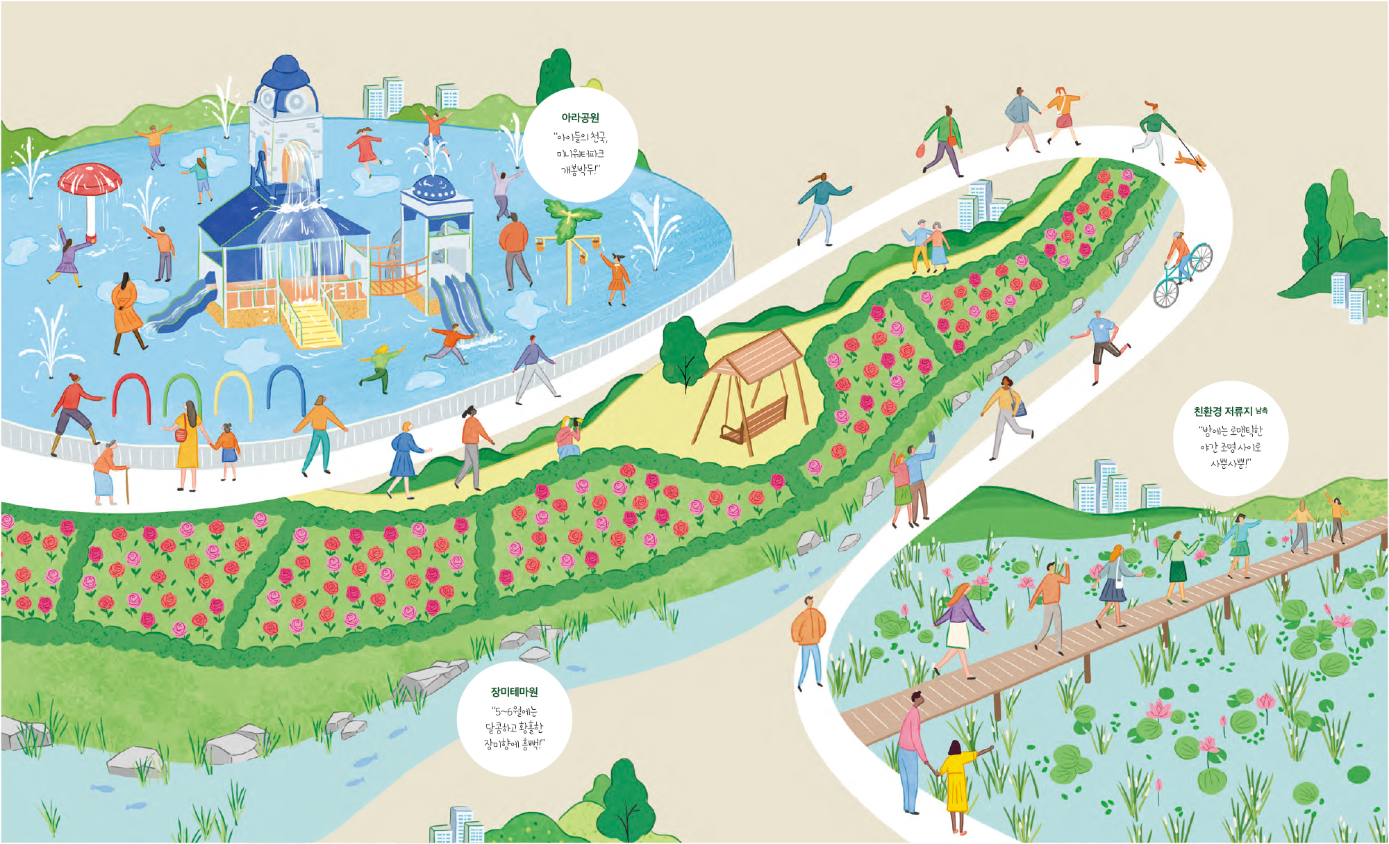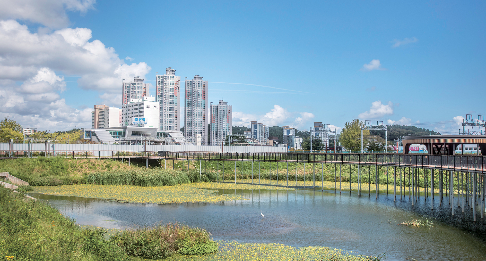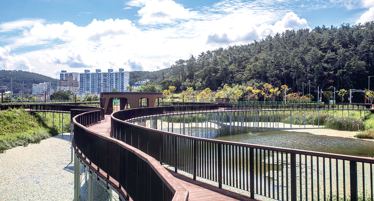 일광신도시 내에는 남북으로 두 곳의 친환경 저류지가 있다. 물 위로 촘촘히 박힌 연잎과 바람에 흔들리는 버들이 초록의 청명한 빛을 낸다. 저류지 위로는 나무 데크길이 이어져 유유자적 산책을 즐길 수 있다. 해가 진 저녁에는 은은한 조명 빛이 어둠을 비춰 아름다움을 자아낸다.
