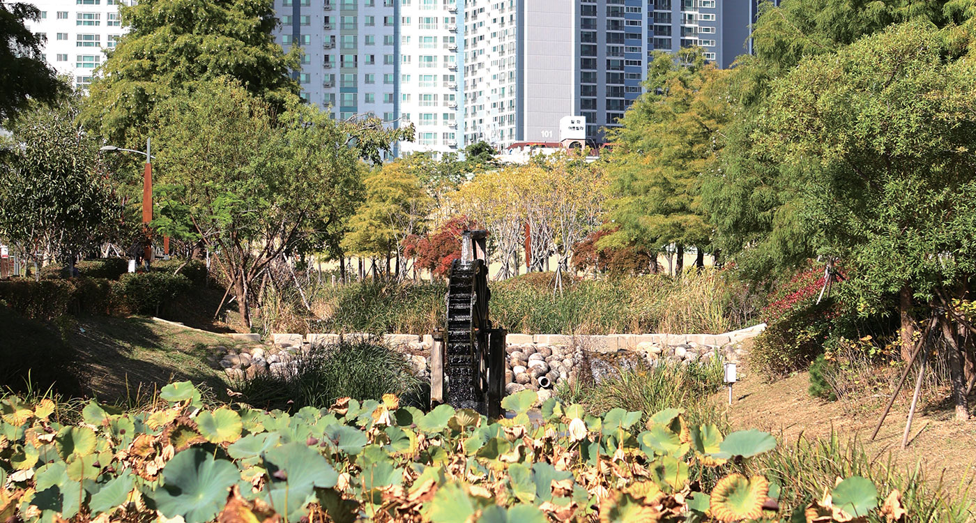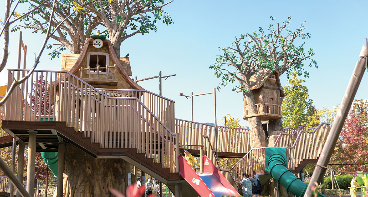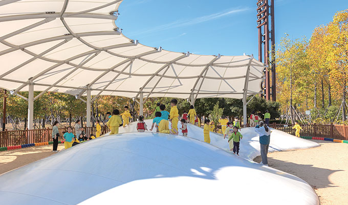 가족 친화적인 공원답게 공원 곳곳에는 아이들을 위한 다양한 놀이시설이 자리하고 있다. 잔디광장 옆 카페테리아 너머로 아이들의 웃음소리가 끊이지 않는 놀이시설이 눈에 띈다. 뭉게구름을 모티브로 만든 부드러운 천 위에서 하늘에 맞닿을 듯 뛰노는 아이들. 데굴데굴 굴러도 까르르 웃음이 터져 나오는 순진무구한 모습이 유리구슬처럼 맑고 투명하다.