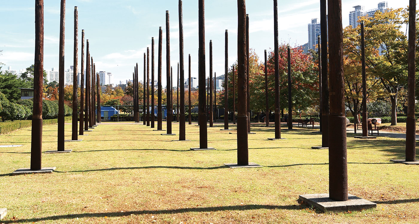 1910년 이후, 일본과 미국 등 이방인의 땅으로 이용되었던 100여 년. 상실의 시간은 흔적을 남긴 채 완전히 지워지지 않았다. 기억의 숲길을 따라 걷다 보면, 하야리아 부대의 나무 전봇대를 재활용해 만든 기억의 기둥이 높이 솟아 있다. 길게 뻗은 기억처럼 키를 늘어뜨린 기둥을 통해 과거와 현재를 잇는 오늘의 흔적을 확인하고, 뼈아픈 어제를 잊지않겠다는 다짐을 엿볼 수 있다.