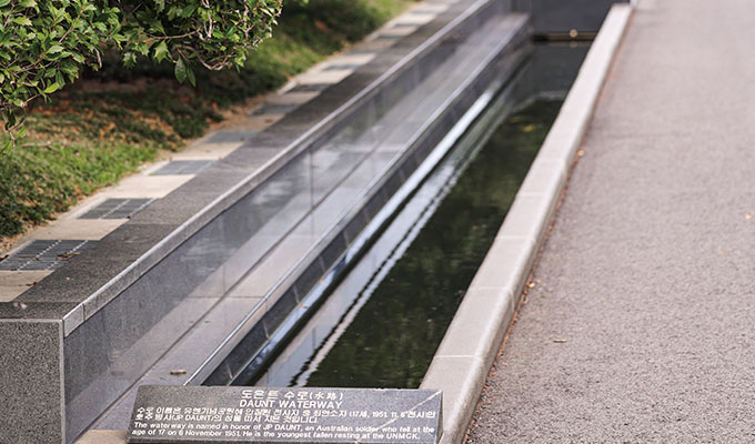 1950년 한국전쟁이 발발하면서 우리는 영국, 튀르키예, 캐나다, 호주 등 바다 건너 먼 나라들로부터 전투 병력과 의료단을 지원(파견)받았다. 그 기간 희생된 병력은 약 41,000명. 교과서에서 익히 보았던 이야기들이 공원을 걷는 동안 구체적인 형태로, 슬픔으로 다가온다. 묘역을 지나 마주하게 되는 ‘도은트 수로’는 당시 나이 17세 최연소 안장자의 이름을 따 만들어졌다. 어릴 적 부모님 손 잡고 방문했던 때에는 알지 못했던 이야기들이 마음을 파고든다.