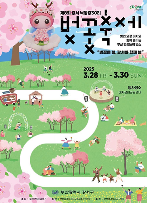 부산에 존재하는 수많은 벚꽃 명소. 그중에서도 벚나무 고목들이 가지를 길게 뻗어 만들어진 벚꽃 터널을 거니는 낭만은 이곳에서만 느낄 수 있다. 대저수문부터 명지IC까지 이어지는 낙동강 제방 12㎞ 구간에는 2천여 그루의 벚나무가 활짝 피어, 흐드러진 벚꽃이 꼬리에 꼬리를 물며 길을 따라 장관을 이룬다. 봄의 정취를 만끽할 수 있는 부산의 대표 벚꽃축제로, 매년 10만 명 이상 관광객이 전국 각지에서 찾아와 지역의 위상을 높이고 있다. 축제 기간엔 강서 벚꽃가요제, 강변 사생대회, 가람 백일장, 벚꽃길 야간 라이트 쇼 등 부대행사도 함께 열리니, 내년 봄에는 가족, 친구와 함께 흩날리는 벚꽃을 맞으며 잊지 못할 추억을 만들어 보는 것은 어떨까.