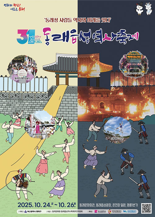 1995년 제1회 충렬제를 시작으로 31년간 이어져 온 동래읍성역사축제는 동래읍성 전투의 의의를 널리 알리기 위해 개최되는 역사교육형 체험 축제다. 올해 축제는 변화하는 시대에 맞춰 전통과 현대를 아우르는 다양한 행사와 프로그램으로 관람객을 사로잡았다. 축제의 하이라이트인 동래성 전투 재현 실경 뮤지컬은 임진왜란 당시 왜군에 맞서 싸운 송상현 동래부사와 읍민들의 이야기를 실감 나게 담아내며, 미디어 아트와 결합해 몰입감을 한층 높였다. 전국에서 유일하게 볼 수 있는 동래 세 가닥 줄다리기도 변치 않는 축제의 명물. 방문객들은 풍부한 체험 프로그램을 즐기며, 청명한 가을 하늘 아래 동래의 전통과 가치를 오감으로 느낄 수 있다.