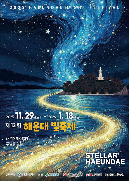 해운대 일대가 눈부신 빛으로 가득 차면 연말이 다가왔음을 실감할 수 있다. 밤이 깊어지면 거리 이곳저곳에 설치된 조형물에 불이 들어오며 축제의 서막을 알린다. 홀로그램 터널과 화려한 포토존, 소원 트리가 관람객의 발걸음을 즐겁게 하고, 구남로 끝에 다다르면 대형 트리와 루돌프가 사람들을 반긴다. 해운대해수욕장에서는 웅장한 음악과 함께 형형색색으로 변하는 미디어 아트와 빛의 조형물이 바다와 어우러져 이색적인 낭만을 선사한다. 올해는 ‘스텔라 해운대(Stellar Haeundae)’를 주제로, 구남로에서 해운대 바다까지 별빛의 물결이 이어지는 장관을 연출할 예정. 별빛이 모인 거대한 은하수 같은 밤바다에서 행복한 연말을 보내보자.