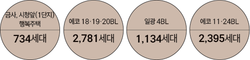 - 금사, 시청앞 1단지 행복주택 734세대 및 에코 18·19 ❶·20BL 2,781세대 입주